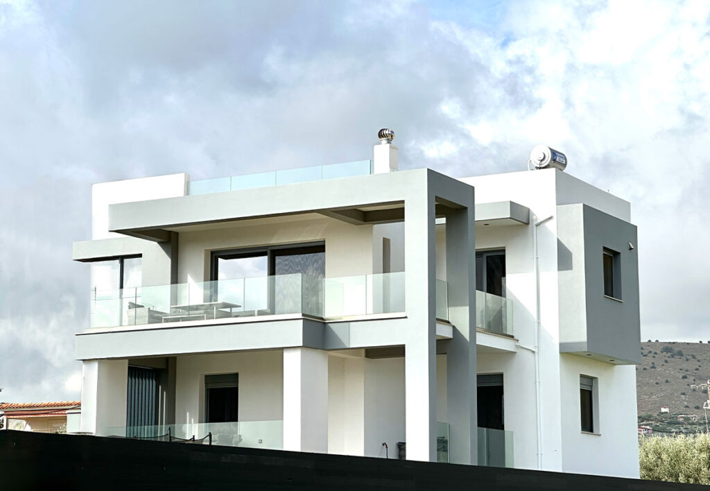 Στην περιοχή Φάρκαινα της Χίου, αυτή η νέα κατασκευή μονοκατοικίας ξεχωρίζει για τον σύγχρονο σχεδιασμό της με γκρι χρωματισμούς και καθαρές, ορθογωνικές ογκοπλασίες. Αναπτύσσεται σε δύο ορόφους με επιπλέον υπόγειο, προσφέροντας λειτουργικότητα και άνεση. Η κατοικία περιλαμβάνει τρία ευρύχωρα υπνοδωμάτια και έναν καλαίσθητο περιβάλλοντα χώρο, ιδανικό για χαλάρωση και υπαίθριες δραστηριότητες, συνδυάζοντας μοντέρνα αισθητική με άνετους χώρους διαβίωσης.