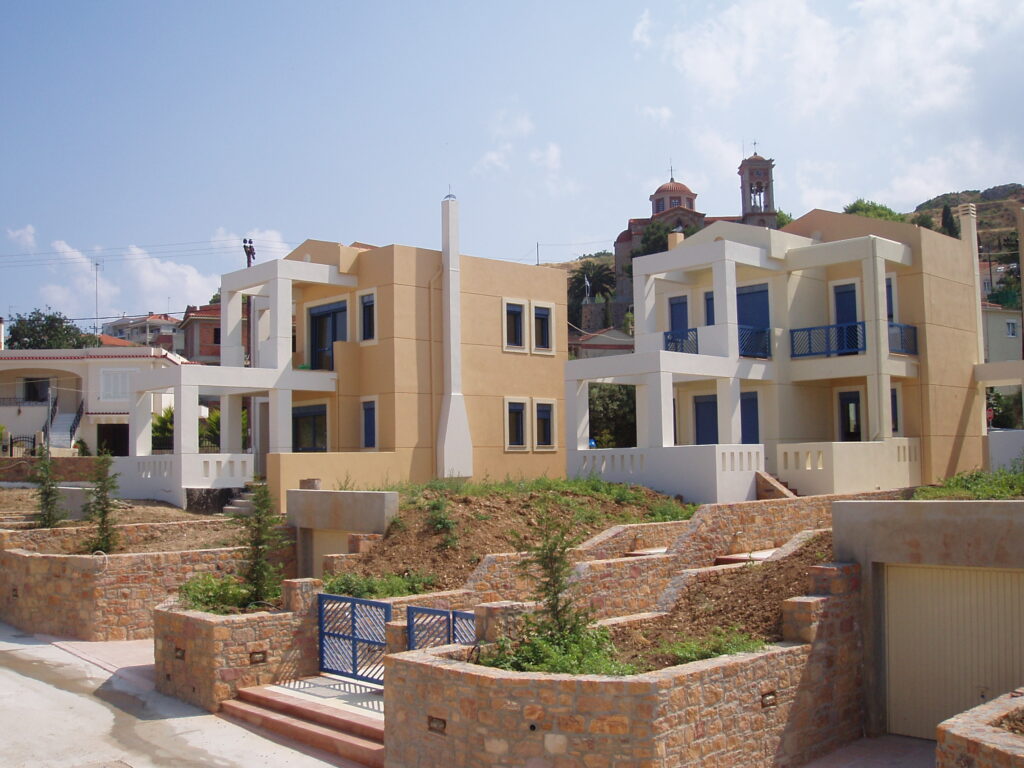 Σε μια έκταση 2 στρεμμάτων στο Λατόμι, κατά μήκος του κεντρικού άξονα της επαρχιακής οδού Χίου-Βολισσού, δεσπόζει ένα πολυτελές οικιστικό συγκρότημα, αποτελούμενο από 4 ανεξάρτητες κατοικίες υψηλής αισθητικής και λειτουργικότητας. Ιδιαίτερη έμφαση έχει δοθεί στους εξωτερικούς χώρους, στη λειτουργικότητα, την ασφάλεια και την άνεση των χώρων, με φυσικό, άπλετο φωτισμό και εύκολη πρόσβαση. Κάθε κατοικία είναι χτισμένη σε ξεχωριστό οικόπεδο 500 τ.μ., με μικτή δομημένη επιφάνεια που κυμαίνεται από 220 τ.μ. έως 240 τ.μ., και διαθέτει ευρύχωρα μπαλκόνια. Οι κατοικίες περιλαμβάνουν ημιυπόγειους χώρους στάθμευσης και βοηθητικούς χώρους, ισόγειο με χώρους καθημερινής διαβίωσης, όροφο με υπνοδωμάτια και άνετες βεράντες, καθώς και δύο έως τρία λουτρά. Το εσωτερικό των κατοικιών διακρίνεται για την άνεση, την πολυτέλεια και την ασφάλεια, ενώ οι περιβάλλοντες χώροι χαρακτηρίζονται από υψηλή αισθητική.
